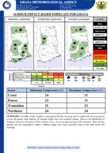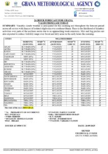 across all sectors with chances of isolated slight rain over southern Ghana.